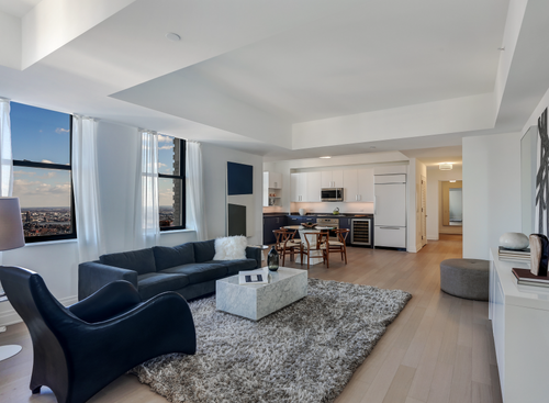 “The 598 feet tall tower is designed with floor to ceiling windows and limestone and brick piers that ascends along the entire length of the façade. The tower shape was conceived with multiple corners, where large corner windows bring impress views and light to the apartments.”