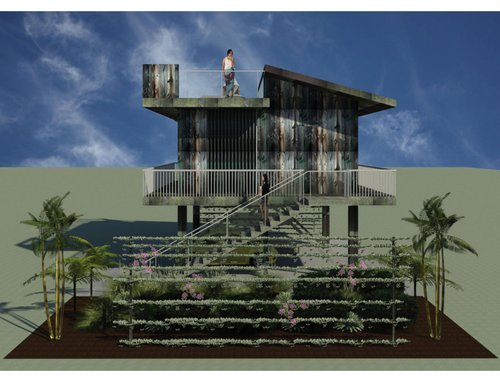 La Surfera is a prototype that serves as a detached unit resting on pilotis. That allows for a parking space underneath as well as for outdoor storage.